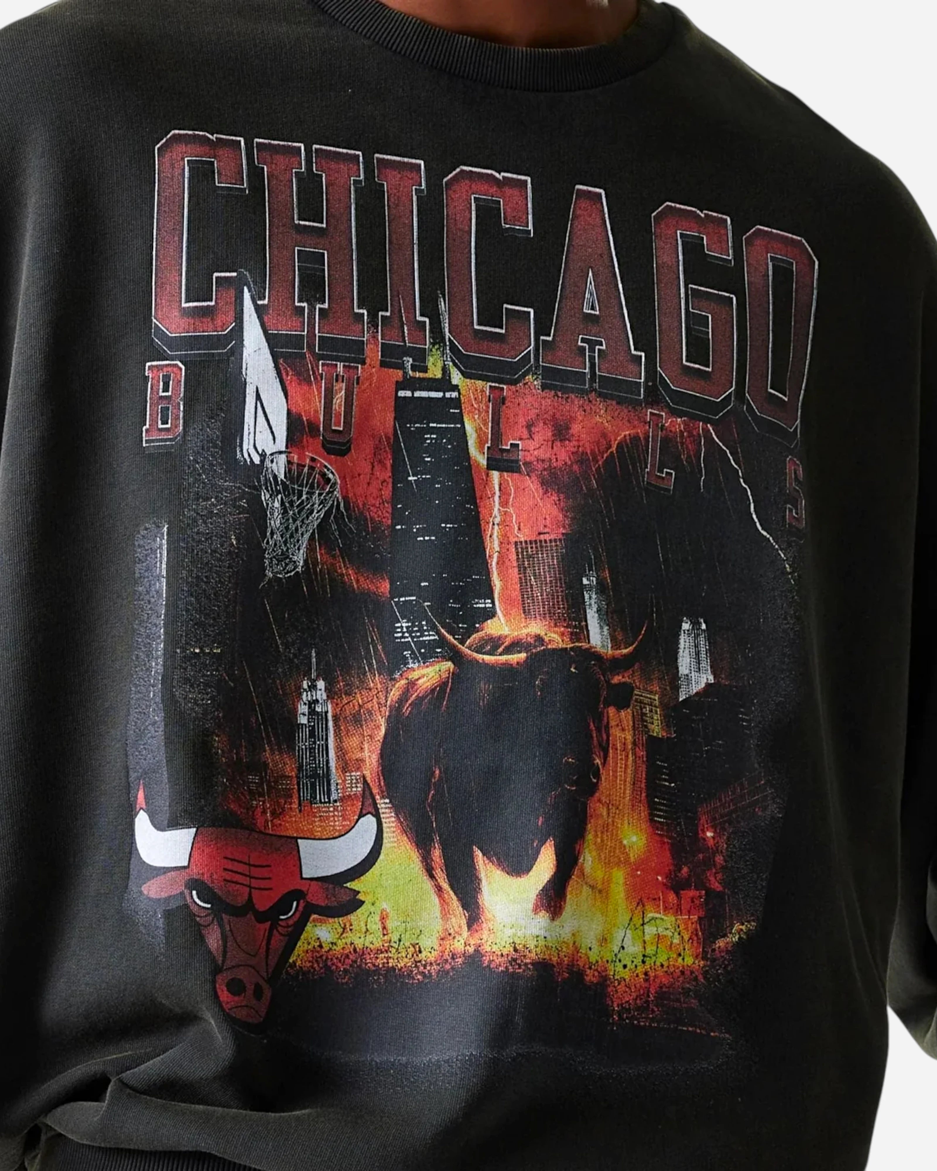 Vendor: New EraOversized Chicago Bulls NBA Washed Graphic Sweatshirt