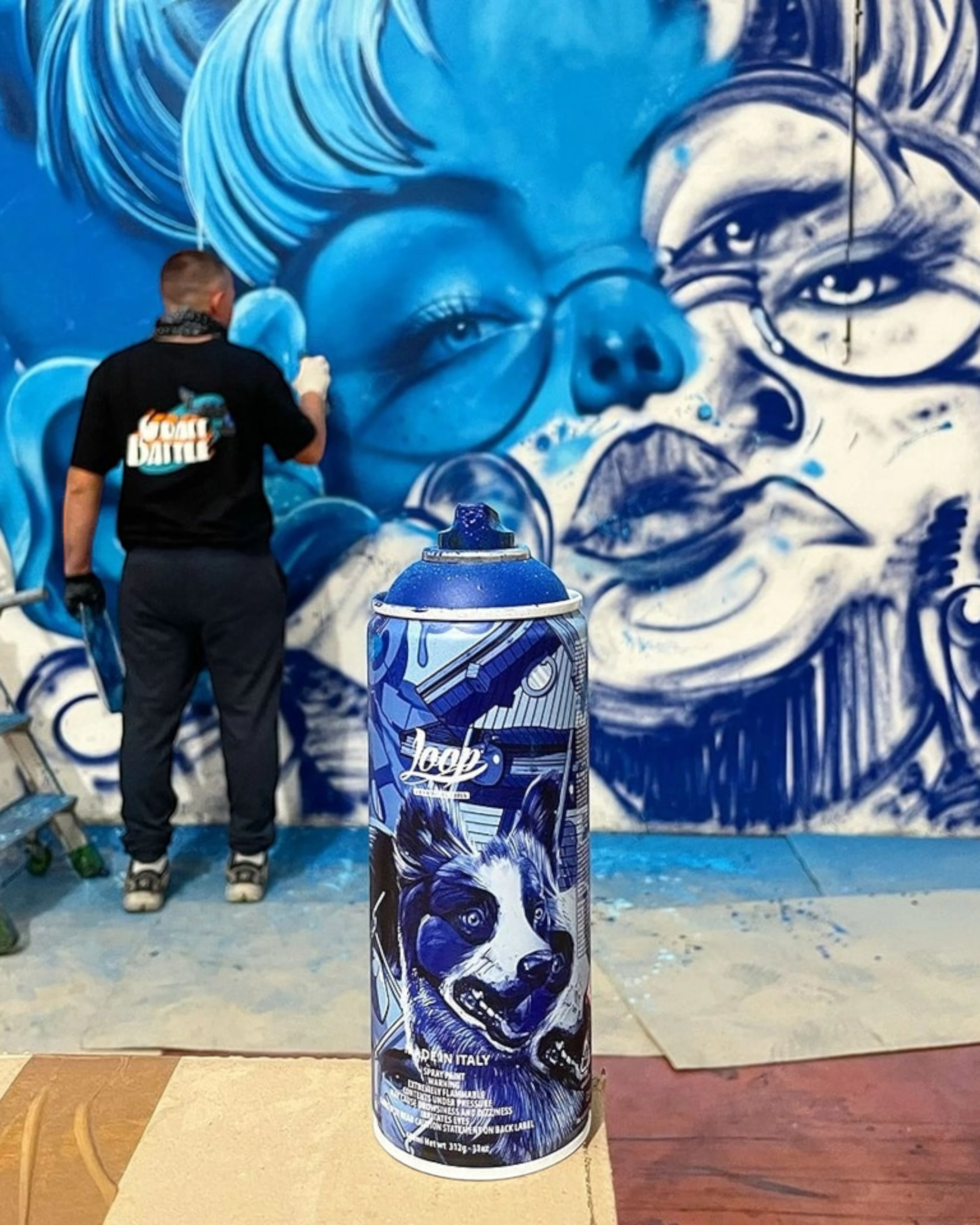 Spray Loop x Cruze. Limited Edition creata in collaborazione con l'artista Cruze, con un audace design blu come il colore dello spray LP 221 Basel.
